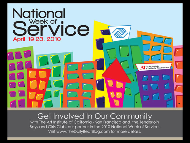 National Week of Service Print Collateral. The marketing objective promote the National Week of Service sponsored by The Art Institute of California, San Francisco.
