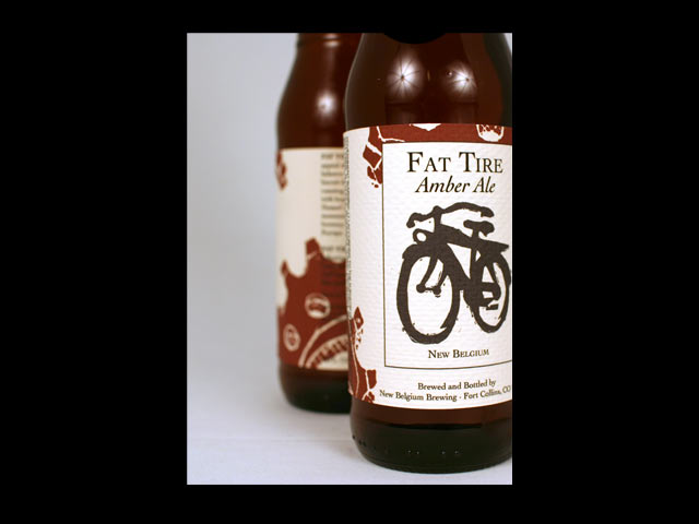 The Fat Tire Beer Label is printed linocut proof of both a bike and a cog. The color and paper choice are neutral and clean.